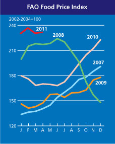 - అజర్బైజాన్ దేశంలో గోధుమ ఉత్పత్తి గత సంవత్సరం వాతావరణం అనుకూలించక 33 శాతం పడిపోయింది. దానితో రష్యా, కజకిస్ధాన్ ల నుండి గోధుమలను దిగుమతి చేసుకోక తప్పలేదు. ఫలితంగా డిసెంబరు 2009 తో పోలిస్తే డిసెంబరు 2010 లో ఆహార ధరలు 20 శాతం పెరిగాయి.