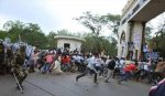 - పోలీసులు, విద్యార్దుల ఘర్షణలో చిక్కుకుని గాయపడ్డ విలేఖరిని ఆసుపత్రికి మోసుకెళ్తున్న దృశ్యం