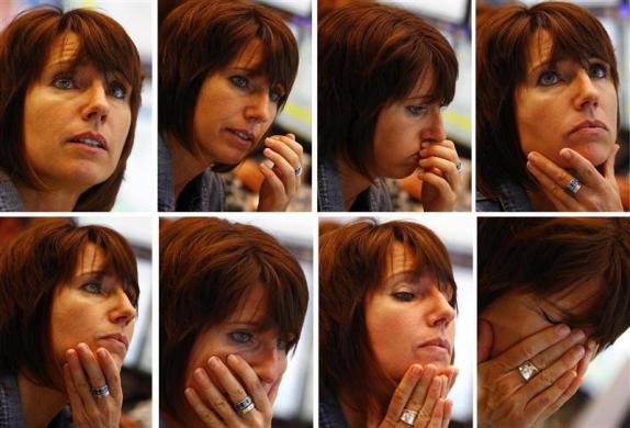 ఫ్రాంక్ ఫర్ట్ స్టాక్ ఎక్ఛేంజిలో ఓ షేర్ల వ్యాపారి ఆగస్టు 9 ప్రారంభంలో షేర్ల పతనం పట్ల స్పందిస్తూ ప్రదర్శించిన వివిధ హావ భావాలు