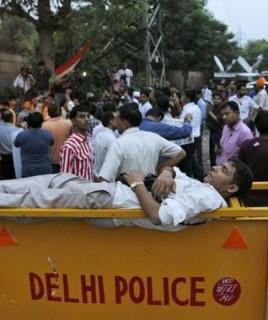 అప్ డేట్ (2): యోగా గురు రాందేవ్, ఆర్ట్ ఆఫ్ లిగింగ్ ఫౌండేషన్ శ్రీ శ్రీ రవి శంకర్ లు కూడా తీహార్ జైలు బయట ఉన్న నిరసనకారులతో జత కలిసారు. రవి శంకర్, జైలు లోపలకి వెళ్ళి హజారేని కలిసినట్లు తెలుస్తోంది. అంతకుముందు బాబా రాందేవ్ రాష్ట్రపతి ప్రతిభా పాటిల్ ని కలిసి హజారే అరెస్టుకి వ్యతిరేకంగా మెమొరాండం ఇచ్చాడు. నిరసనకారులను ఉద్దేశించి మాట్లాడుతూ రాందేవ్, ప్రజాస్వామ్యం పేరుతో ప్రభుత్వం కుట్ర చేస్తున్నదని ఆరోపించాడు.