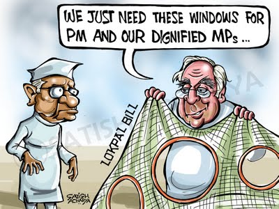 కోరలు లేని లోక్పాల్ బిల్లుని పార్లమెంటులో ప్రవేశ పెట్టి కేంద్ర ప్రభుత్వం చేతులు దులుపుకుంది. శక్తివంతమైన బిల్లుని తెమ్మని అన్నా హాజారే బృందం చెబుతుంటే పార్లమెంటులో నిర్ణయాలు తీసుకునేది మీరా? మేమా? అని కపిల్ సిబాల్, మన్మోహన్, ప్రణబ్ లాంటి పెద్దలు కాని పెద్దలు రోషపడుతున్నారు. ప్రభుత్వ లోక్ పాల్ బిల్లు మంచిదేనని కేంద్ర మానవ వనరుల శాఖ మంత్రి కపిల్ సిబాల్, అన్నా హజారేకి నచ్చ జెపుతున్నాడిక్కడ.