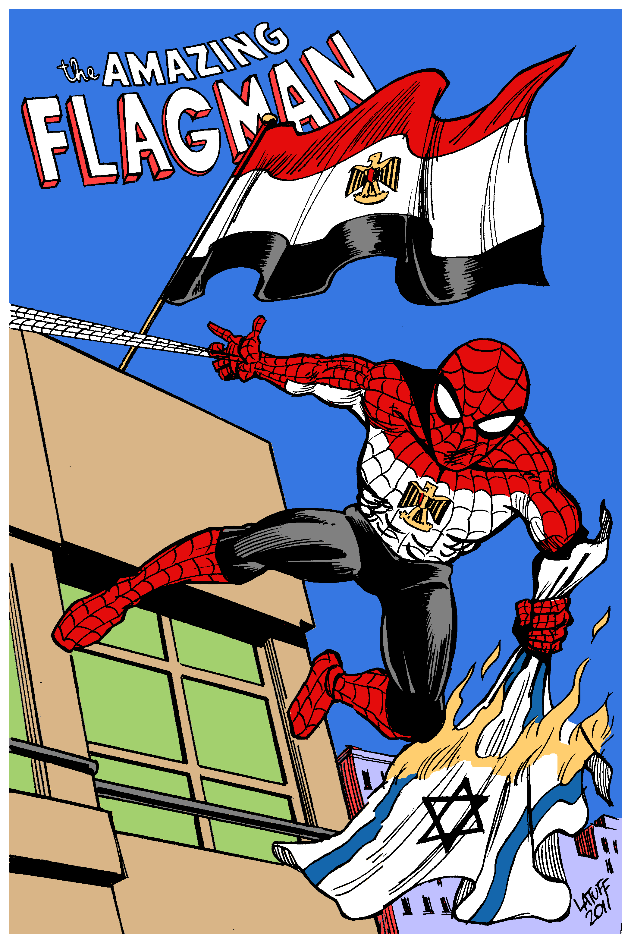 ఉద్యమ కాకమీద ఉన్న ఈజిప్టు ప్రజలు ఇజ్రాయెల్ దాష్టీకానికి అగ్రహోదగ్రులయ్యారు. అదే రాత్రి ఈజిప్టులోని ఇజ్రాయెల్ రాయబార కార్యాలయం ముందు పదుల వేలల్లో గుమిగూడారు. ఇజ్రాయెల్ ఆటవికతకు బదులు కోరింది. అప్పుడు జరిగిందొక అనూహ్య ఘటన. సమూహం ఇచ్చిన శక్తితో ఓయువకుడు “స్పైడర్ మేన్” కాదు, కాదు… “ఫ్లాగ్ మేన్” అయ్యాడు. రాయబార కార్యాలయంపైకి ఎగబాకాడు. అరబ్బులపై ఇజ్రాయెల్ జాత్యహంకారానికి ప్రతీకగా నిలిచిన ఆ దేశ జెండాని విసిరికొట్టి, ఈజిప్టు జాతీయ జెండాని సగర్వంగా ఎగురవేశాడు.