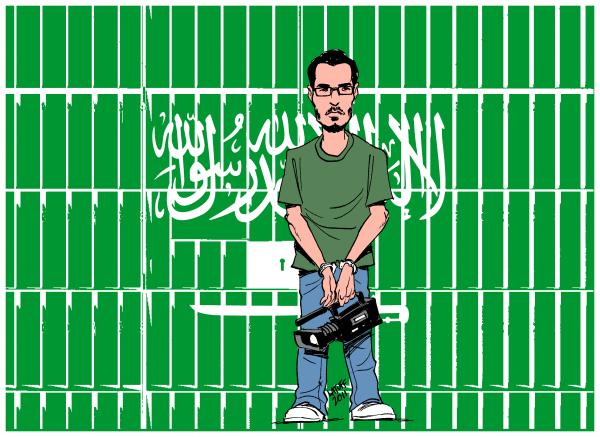 సౌదీ అరేబియాకు చెందిన ‘ఫెరాస్ బగ్నా’ దేశ పౌరుడుగా ఓ చిన్న ప్రయత్నం చేశాడు. దేశంలో ఉన్న దరిద్రాన్ని వీడియో ద్వారా చూపించి తద్వారా ధనవంతులనుండి విరాళాలు సేకరించి పేదలకు ఇవ్వాలనుకున్నాడు. అనుకన్నదే తడవుగా ఫెరాస్ సౌదీ రాజధాని రియాధ్ లో పేద ప్రాంతాలకు వెళ్ళి వారి ఇళ్ల లోపలి భాగం కూడా చూపించి, వారి ఆర్ధిక పరిస్ధితి గూర్చి వారి చేతనే చెప్పించి ఆ దృశ్యాలతో ఒక వీడియో రూపొందించాడు. తన వంతు బాధ్యతగా తాను సందర్శించిన పేద ఇళ్ళకు కొంత సాయాన్ని కూడా అందించాడు. అయితే అతని వీడియో ఇంటర్నెట్ లో విపరీతంగా క్లిక్ అయ్యి పెద్ద ఎత్తున ఫాలోయింగ్ ఏర్పడింది. విరాళాలు వచ్చాయో లేదో తెలియదు గాని సౌదీ రాచరిక ప్రభుత్వం అతనిని తీసుకెళ్ళి జైల్లో పెట్టింది. ఆయన విడుదల కోరుతూ బ్రెజిల్ కార్టూనిస్టు ‘కార్లోస్ లాతుఫ్’ గీసిన కార్టూన్ ఇది.