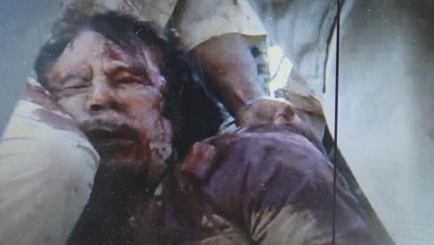 గడ్డాఫీ చనిపోయింది లిబియా తిరుగుబాటు సైన్యాల చేతుల్లో కాదు. జన్మ పట్టణం సిర్టే నుండి వాహనాల కాన్వాయ్ లో కల్నల్ మౌమ్మర్ గడ్డాఫీ వెళుతుండగా నాటో బలగాలు అతని వాహనాలపై బాంబు దాడులు చేశాయి. రెండు కాళ్ళు, తలకు బలమైన గాయాలు కావడంతో అతని గాయాలతోనే చనిపోయాడు. గడ్డాఫీ విగత శరీరాన్ని మిస్రాటా నగరానికి తెచ్చినట్లుగా రాయిటర్స్ ప్రకటించింది. గడ్డాఫీ మృత శరీరం ఫోటోను యూట్యూబ్ లో ఉంచబడింది.