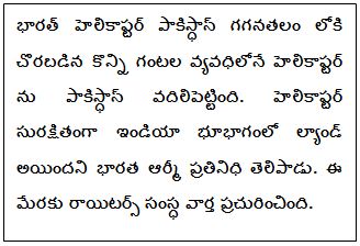 “వాతావరణం సరిగ్గా లేకపోవడంతో ఛీటా హెలికాప్టర్ ‘నియంత్రణ రేఖ’ ను దాటి పోయింది. ఉద్దేశ్యపూర్వకంగా చొరబడలేదు” అని భారత మిలట్రీ తెలిపినట్లుగా టైమ్స్ నౌ టెలివిజన్ వార్తలు తెలిపాయి. కాశ్మీరు భూభాగంలో పాకిస్ధాన్, ఇండియా ఆధీనంలో ఉన్న భూ భాగల మధ్య ఉన్న రేఖను ‘నియంత్రన రేఖ’ గా పిలుస్తారు. ఇండియా, చైనాల మధ్య ఉన్న రేఖను ‘వాస్తవాధీన రేఖ’ గా పిలుస్తారు. తాజా ఘటనను ఇరు దేశాలు సామరస్య పూర్వకంగానే పరిష్కరించుకుంటాయని విశ్లేషకులు భావిస్తున్నారు. 1999 లో ఇరు దేశాలు దాదాపు యుద్ధానికి చేరువలో వచ్చిన కార్గిల్ లోనే తాజా ఘటన చేసుకోవడం యాదృచ్ఛికమో కాదో తెలియవలసి ఉంది.