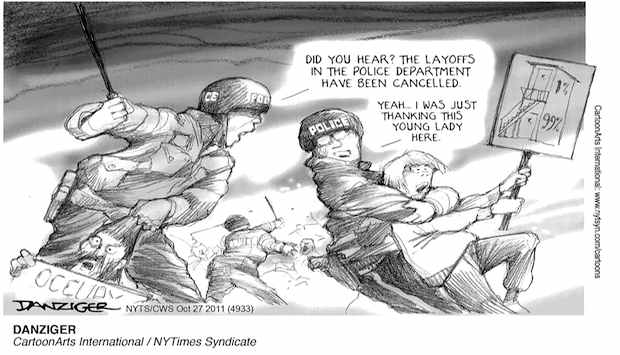 అమెరికా, యూరప్ లలో ఆర్ధిక సంక్షోభం ఫలితంగా లక్షల సంఖ్యలో ఉద్యోగాలు రద్దయ్యాయి. ఇంకా రద్దువుతూనే ఉన్నాయి. అన్ని విభాగాలతో పాటు పోలీసు విభాగంలో కూడా ఉద్యోగాల సంఖ్యను కుదించడానికి అమెరికా, యూరప్ లు నిర్ణయించుకున్నాయి. అయితే ‘వాల్ స్ట్రీట్’ ఉద్యమం పుణ్యామాని ప్రభుత్వాలకు పోలీసుల అవసరం పెరిగింది. ఉద్యమాలను అణచివేయడానికి పోలీసుల అవసరం పెరగడంతో పోలీసు విభాగంలో లే-ఆఫ్ లు విధానం ఎలా అమలవుతుంది?
