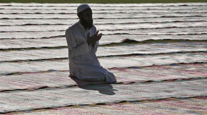 A Muslim man is silhouetted against the rising sun while offering prayers during the Eid al-Adha festival in Jammu November 7, 2011. Muslims around the world celebrate Eid al-Adha by the sacrificial slaughtering of sheep, goats, cows and camels to commemorate Prophet Abraham’s willingness to sacrifice his son Ismail on God’s command. REUTERS/Mukesh Gupta (INDIAN ADMINISTERED KASHMIR – Tags: RELIGION SOCIETY)