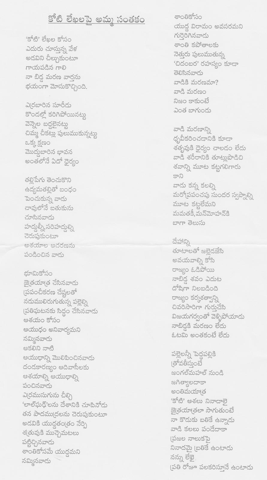 26 thoughts on “కవి ఆవిష్కరించిన ‘కిషన్ జీ’ తల్లి గుండె ముచ్చట”