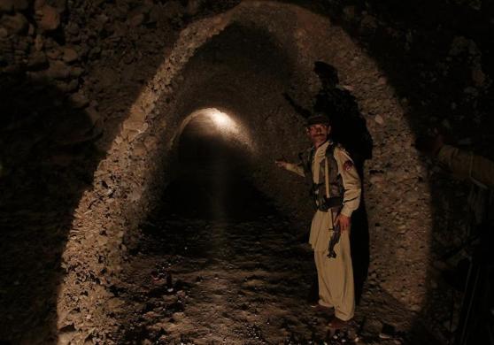 A soldier briefs the media as he walk through a cave, which the Pakistan Army said was built and used by the Pakistan Taliban, in Sadda a town in Kurram Agency located in Pakistan’s Federally Administered Tribal Areas (FATA) along the Afghanistan border on July 6, 2010. Eighty per cent of the Kurram tribal region has been cleared of militants and the military operation in the area is still underway, Commandant Colonel Tauseef Akhtar said, Pakistan’s Dawn Newspaper reported. REUTERS/Mian Khursheed (PAKISTAN – Tags: CIVIL UNREST MILITARY)