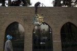 - A protester removes the emblem of the British embassy
