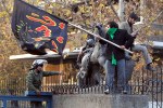 - Protesters carry the royal coat of arms after breaking in to the British embassy