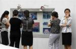 - North Korean embassy staff look at pictures of North Korean leader Kim Jong-il on display outside the North Korean embassy in Jakarta