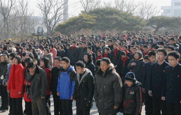 Pyongyang residents gather as they mourn over the death of North Korean leader Kim Jong-il in Pyongyang