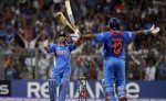 - కెప్టెన్ మహేంద్ర సింగ్ ధోనీ, యువరాజ్ సింగ్ ల గెలుపు సంబరం
