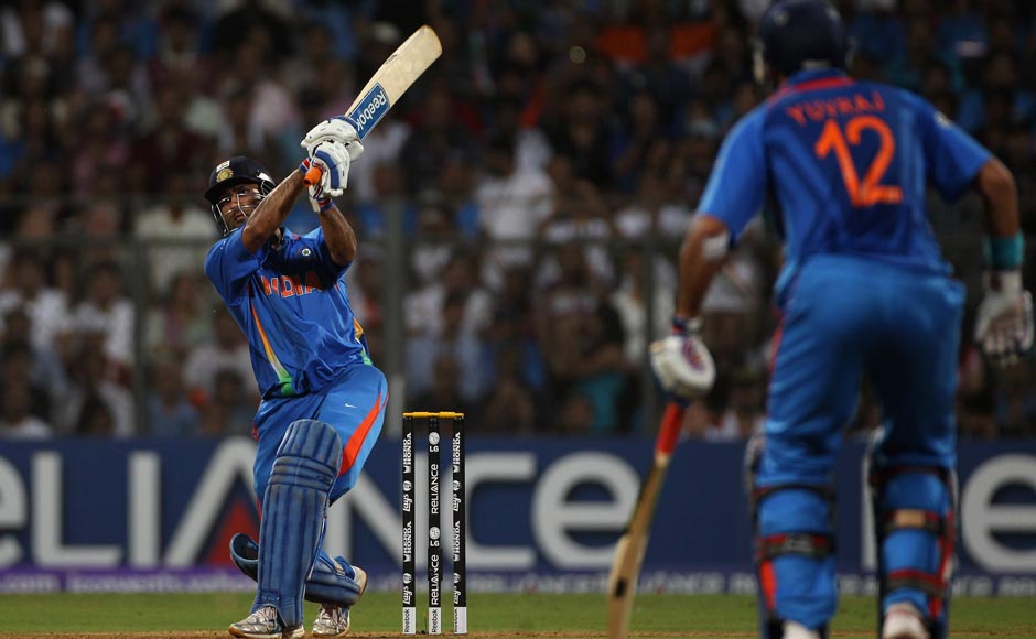 విన్నింగ్ షాట్ సిక్సర్ బాదిన భారత జట్టు కెప్టెన్ మహేంద్ర సింగ్ ధోని