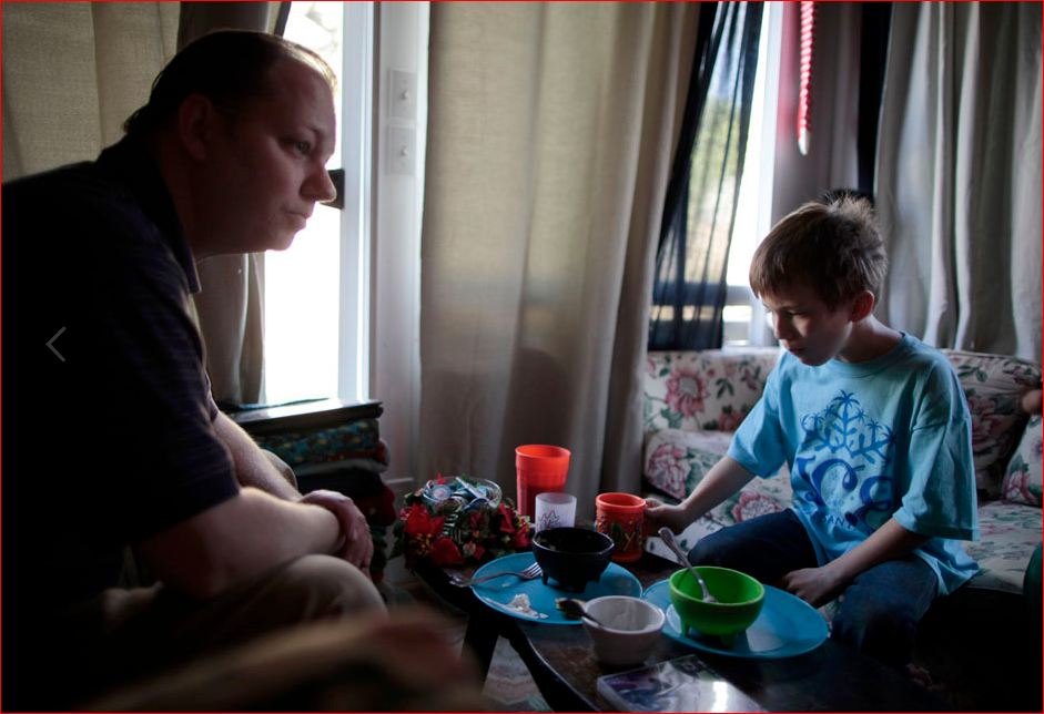 ఇల్లుగా మార్చిన గ్యారేజిలో టీపాయ్ నే డైనింగ్ టేబుల్ గా మార్చి లంచ్ కానిచ్చేస్తున్నారు తండ్రీ కొడుకులు ట్రేసీ, డేలాన్ లు.