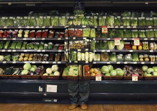 చూడబోతే ఇది కంప్యూటర్ గ్రాఫిక్స్ లా ఉంది గాని నిజానికి కాదు. “లు బోలిన్” అనే చైనా కళాకారుడు ప్రదర్శిస్తున్న కళ ఇది. తన వొంటి పైన కూరగాయలను చిత్రించుకుని బీజింగ్ లోని ఓ సూపర్ మార్కెట్ లో కూరగాయలున్న షెల్ఫ్ ముందు నిజంగానే నిలబడి ఉన్నాడు. నవంబరు 10, 2011 తేదీన లు, ఈ చిత్ర కళను ప్రదర్శించాడు. “అదృశ్యమయ్యే కళాకారుడు” (వేనిషింగ్ ఆర్టిస్ట్) గా పేరు పొందిన ‘లు బోలిన్’ ఆరు సంవత్సరాలుగా ఇలా అదృశ్యమయ్యే కళను ప్రాక్టీసు చేస్తున్నాడట! పరిసరాలకు తగ్గట్టుగా వొంటిపైన పెయింటింగ్ వేసుకుని అదృశ్యమవడం ఈ కళ లక్ష్యం, లక్షణం.