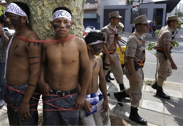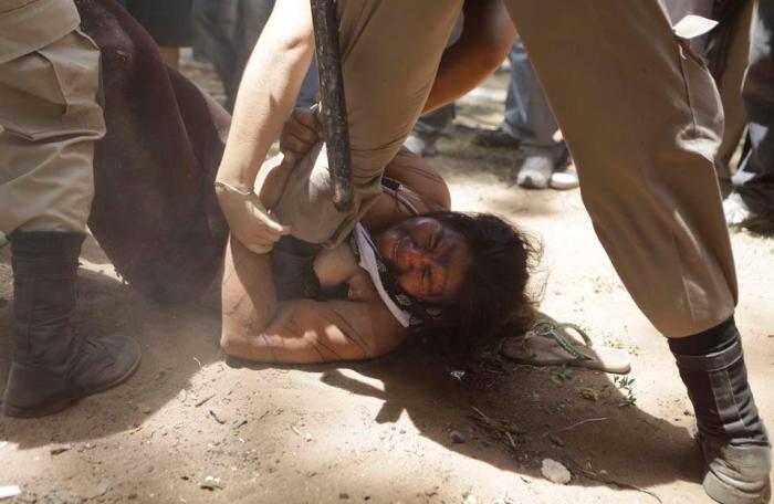 ‘అసోసియేటెడ్ ప్రెస్’ వార్తా సంస్ధ అందించిన ఈ ఫొటోని ‘ది వాల్ స్ట్రీట్ జర్నల్’ పత్రిక ప్రచురించింది. పరాగ్వే దేశంలో ‘అసున్సియన్’ (Asuncion) పట్నంలో చోటు చేసుకున్న దృశ్యాలివి. ఆ పట్నంలోని ఓ స్క్వేర్ ని ఆక్రమించడానికి పరాగ్వే దేశంలోని ‘అవా గ్వొరాని’ అనే ఆదిమ జాతి వారు రెండు రోజులుగా ప్రయత్నిస్తున్నారు. వద్ద ప్రభుత్వ సాయం కోసం వీరు అర్ధిస్తూ ఆ స్క్వేర్ వద్దకు చేరుకున్న వారిని అక్కడి నుండి తొలగించడానికి పోలీసులు ఇలా కరుకు పద్ధతిని అవలంబించారు. వారేమీ ప్రజాస్వామిక హక్కులను డిమాండ్ చేయలేదు. కేవలం తమకు తగిన సాయం చేయాలని అర్ధిస్తున్నారంతే. తమను తామే చెట్లకు కట్టేసుకుని సాయం కోరినా వారికి పోలీసుల బలవంతపు ఖాళి సమాధానంగా మిగిలింది. నిరసన చేయడానికి స్ధలం సంగతి అటుంచి, సాయం కోరడానికి కూడా పట్నంలో వీరికి జాగా దొరకలేదు. అన్ని విధాలా వెనుక బడ్డ ఇలాంటి ఆదిమ జాతీయులు ప్రతి దేశంలోనూ ఈ పరిస్ధితిల్లోనే తటస్ధించడం అభివృద్ధి చెందిన నాగరిక ప్రపంచం వారికి ఇస్తున్న బహుమతి.