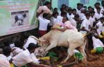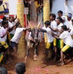 తమిళనాడులొ మధురై సమీపాన ఉన్న అనంగనల్లూరు గ్రామంలో జరిగిన జల్లికట్టు దృశ్యాలివి. ‘జల్లి కట్టు’ పేరుతో ఆంబోతులతో తలపడే ఆచారం ఒక్క ఆంధ్ర ప్రదేశ్ కే పరిమితం కాదన్నమాట! ‘ఈ ఎద్దులు మాకు దైవంతో సమానం’ అని జల్లికట్టు జరిగిన ప్రాంగణంలో ప్రదర్శించబడిన ఒక బ్యానర్ చెబుతోంది. దైవం అంటూనె వాటిపై హింసకు పాల్పడడం కేవలం ‘జీవన వైవిధ్యం’ గానో, ‘సంస్కృతి’ గానో చెప్పుకుని సరిపెట్టుకోగలమా?
