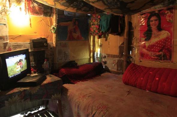 A view of a prostitute’s room at a brothel in Faridpur February 23, 2012. Living in squalid conditions prostitutes earn about earn from 300 ($3.66) to 1000 taka ($12.19) a day servicing between 10 and 20 customers.