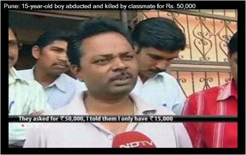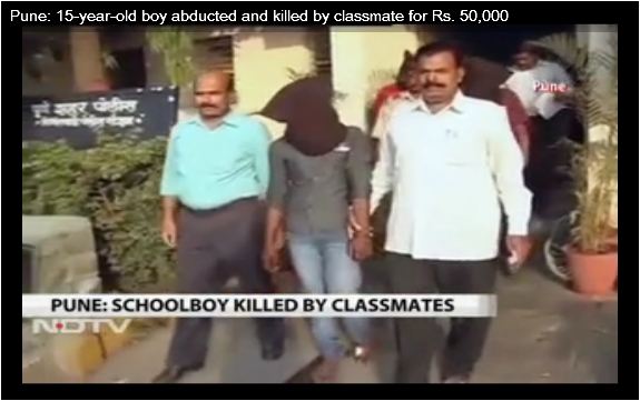 విలాసాల ఖర్చుల కోసం పదో తరగతి విద్యార్ధులు తమ క్లాస్ మేట్ ని కిడ్నాప్ చేసి హత్య చేసిన దారుణం పూణె లో చోటు చేసుకుంది. క్లాస్ మేట్ తల్లిదండ్రులకు గర్భ శోకం మిగల్చడమే కాక తమ తల్లిదండ్రులను సైతం సమాజంలో తలెత్తుకోనీకుండా చేసిన విద్యార్ధులు తమకు టి.వి సీరియళ్ళు స్ఫూర్తినిచ్చాయని పోలీసులకి చెప్పారు. టి.వి సీరియళ్ళే తమకు దారి చూపాయని విద్యార్ధులు తమ విచారణలో చెప్పినట్లుగా పోలీసు అధికారులు చెప్పారు.