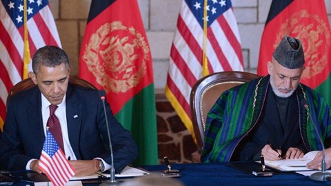2014 తర్వాత కూడా మరో పదేళ్ళ పాటు ఆఫ్ఘనిస్ధాన్ లో అమెరికా సైన్యం కొనసాగడానికి అమెరికా అధ్యక్షుడు బారక్ ఒబామా తో ఒక ఒప్పందం పై సంతకం చేసిన మరుసటి రోజే హమీద్ కర్జాయ్ అమెరికా పైనా, అమెరికా సైనికుల పైనా విమర్శలకి పూనుకున్నాడు. ఒసామా బిన్ లాడెన్ ను హత్య చేసి మే 2 తో సంవత్సరం పూర్తయిన సందర్భంలోనే ఆఫ్ఘనిస్ధాన్ లో అమెరికా సైనికులు మరింత కాలం కొనసాగడానికి వీలుగా ‘వ్యూహాత్మక భాగస్వామ్య ఒప్పందం’ పై కర్జాయ్ సంతకం చేశాడు.