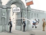 ఫ్రాన్సు అధ్యక్షుడు నికొలస్ సర్కోజి ఓటమి పై యూరోపియన్ కార్టూనిస్టులు ఇలా స్పందించారు. యూరోపియన్ బహుళజాతి కంపెనీలతో పాటు అమెరికా బహుళజాతి కంపెనీలకు లబ్ది చేకూరుస్తూ జర్మనీ ఛాన్సలర్ ఏంజెలా మెర్కెల్, ఫ్రాన్సు అధ్యక్షుడు నికొలస్ సర్కోజీల నేతృత్వంలో యూరోపియన్ ప్రభుత్వాలు అమలు చేసిన పొదుపు ఆర్ధిక విధానాలతో యూరోపియన్ ప్రజలు తీవ్రంగా విసిగిపోయారు. కంపెనీలకు బెయిలౌట్లు పంచిపెట్టడం వల్ల పేరుకున్న అప్పులను కోతలు, రద్దులతో ఇ.యు ప్రభుత్వాలు వసూలు చేస్తున్నాయి. కార్మికులు, ఉద్యోగుల వేతనాలలో గణనీయ భాగాన్ని కంపెనీల లాభాలకు తరలిస్తూ కంపెనీల లాభాల సంక్షోభాన్ని ప్రజల నెత్తిన రుద్దుతున్నాయి. ఫలితంగా ఎన్నికలు జరిగిన చోటల్లా అధికార పార్టీలు ఓటమి పాలవుతున్నాయి. స్పెయిన్, పోర్చుగల్, జర్మనీ (స్ధానిక ఎన్నికలు), ఫ్రాన్సు లకు తోడు ఆదివారం గ్రీసు లో కూడా అధికార కూటమి పదవీచ్యుతురాలయింది.