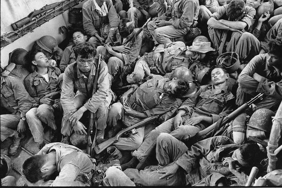 FILE – In this Aug. 1962 file photo shot by Associated Press photographer Horst Faas, South Vietnamese government troops from the 2nd Battalion of the 36th Infantry sleep in a U.S. Navy troop carrier on their way back to the Provincial capital of Ca Mau, Vietnam. Faas, a prize-winning combat photographer who carved out new standards for covering war with a camera and became one of the world’s legendary photojournalists in nearly half a century with The Associated Press, died Thursday May 10, 2012. He was 79. (AP Photo/Horst Faas, File)