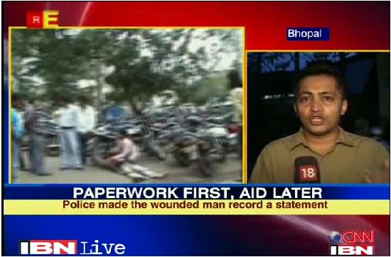 మధ్య ప్రదేశ్ లోని ఇండోర్ పట్టణంలో జరిగిన ఈ హృదయ విదారక సంఘటనను ఐ.బి.ఎన్ లైవ్ టి.వి చానెల్ రికార్డు చేసి ప్రసారం చేసింది. పోలీసు స్టేషన్ ముందు పార్క్ చేసి ఉన్న వాహనాలకు ఆనుకుని రక్తం కారుతున్న శరీరంతో రవి పడి ఉంటే అతని స్నేహితుడు దీనంగా దిక్కులు చూస్తున్న దృశ్యం ఎవరినైనా కలిచివేయక మానదు. అంబులెన్స్ లో రవిని ఎక్కిస్తున్నపుడు అతను తెలివిగా ఉండడం కనిపిస్తూనే ఉంది. చొక్కా పైకెత్తి కత్తి పోటుని ఐ.బి.ఎన్ కెమెరాకి చూపించాడు కూడా. కానీ ఆసుపత్రికి వెళ్ళే వరకూ అతని ప్రాణం నిలవలేదు. అంబులెన్స్ నుండి అతని విగత శరీరాన్ని దించడం గమనిస్తే పోలీసుల ఉదాసీనత, యాంత్రిక విధి నిర్వహణ ఒక ‘ప్రాణం ఖరీదు’ తో సమానమైందని అర్ధం అవుతుంది.