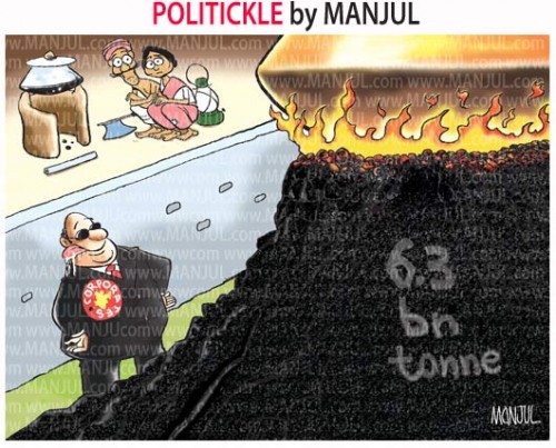 ఇవేవీ మధ్య ప్రదేశ్ ముఖ్యమంత్రికి గానీ, ప్రధాన మంత్రి మన్మోహన్ కి గానీ, EGoM కి గానీ ఎక్కలేదు. కంపెనీల సేవకోసమే ప్రభుత్వాలు నడుపుతున్నవారికి ప్రజల ప్రయోజనాలతో పని లేదు. ప్రభుత్వ నిబంధనలతోనూ, పర్యావరణ చట్టాలతోనూ పని లేదు. ఫలితంగా మే నెలలో మహాన్ బొగ్గు గని తవ్వకానికి ప్రవేటు కంపెనీలకు అనుమతి మంజూరయింది. ఈ మంజూరులో అనేక నిబంధనలను కేంద్ర రాష్ట్ర ప్రభుత్వాలు గాలికి వదిలేశాయి. అంతర్జాతీయ పర్యావరణ వేదికలపై కర్బన వాయువుల వెల్లడిని కట్టడి చేస్తామని అట్టహాసంగా ఇచ్చిన హామీని ప్రధాని తానే ఉల్లంఘించాడు. అటవీ వనరులను పరిరక్షించి తద్వారా విస్తృత జీవవైవిధ్యాన్ని కాపాడాలన్న సాధారణ సూత్రాన్ని సైతం విస్మరించాడు. మధ్య ప్రదేశ్ లో ఆర్ధిక కార్యకలాపాలు పుంజుకుంటాయన్న ఒకే ఒక కంపెనీల కారణం తప్ప మధ్యప్రదేశ్ ముఖ్యమంత్రి ఎలాంటి ప్రజా ప్రయోజనాన్ని చూపలేకపోయాడు. కేంద్రంలోని కాంగ్రెస్ ప్రభుత్వం, రాష్ట్రంలోని బి.జె.పి ప్రభుత్వం ఉమ్మడిగా కంపెనీలకు సేవ చేస్తున్న నేపధ్యంలో మన్మోహన్ రాజీనామా కోసం బి.జె.పి సాగిస్తున్న ప్రహసనం ఎంతటి నాటకమో అర్ధం అవుతుంది.