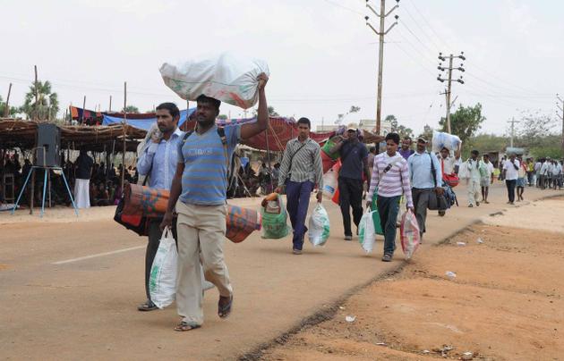 అణు కర్మాగారంలో పని చేయడానికి ఉత్తర రాష్ట్రాలనుండి వచ్చిన కార్మికులు. ఇళ్ళను ఖాళీ చేయించడంతో వెనక్కి వెళ్తున్నారు. (అక్టోబరు 15)