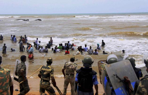 జల సత్యాగ్రహం చేస్తున్న మత్స్యకారులను చుట్టుముట్టేందుకు పోలీసుల ప్రయత్నం