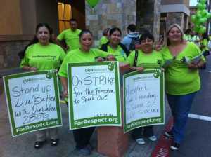 అదే నెలలో డల్లాస్, శాన్ డీగో నగరాల్లో భరించరాని పని పరిస్ధితులకు వ్యతిరేకంగా వందల మంది కార్మికులు వీధుల్లో కవాతు నిర్వహించారు. డల్లాస్ నగరంలో ‘అవర్ వాల్ మార్ట్’ సంస్ధ ఆధ్వర్యంలో కార్మికులంతా సమ్మేలోకి దిగారు. డల్లాస్ నగరంలోనే మొదటిసారిగా వాకౌట్ చేసి కవాతు నిర్వహించారు. ఉద్యోగుల సౌకర్యాలు మెరుగుపరచాలని డిమాండ్ చేసినందుకే కక్ష సాధింపు చర్యలకు దిగడంపై తీవ్ర నిరసన తెలిపారని ‘అవర్ వాల్ మార్ట్’ ఒక ప్రకటనలోలో తెలిపిందని ‘ది హిందూ’ తెలిపింది. మరోవైపు మియామి, డి.సి.-ఏరియా, సాక్రమేంటో, దక్షిణ కాలిఫోర్నియా, బే-ఏరియా తదితర ప్రాంతాల్లోని వాల్ మార్ట్ స్టోర్స్ ల నుండి కార్మికులు వాకౌట్ నిర్వహించి నిరసన తెలిపారని సదరు సంస్ధ తెలిపింది.