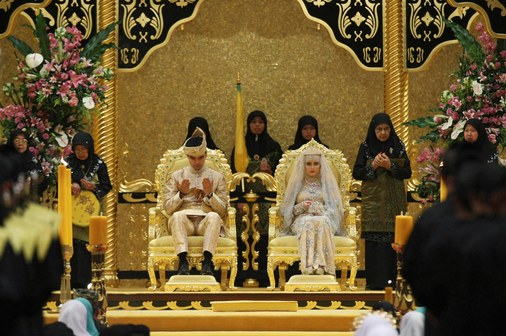సెరి బెగవాన్, బ్రూనె: బ్రూనె సుల్తాన్ కూతురి సాంప్రదాయ వివాహంలో వధూవరుల ప్రార్ధన