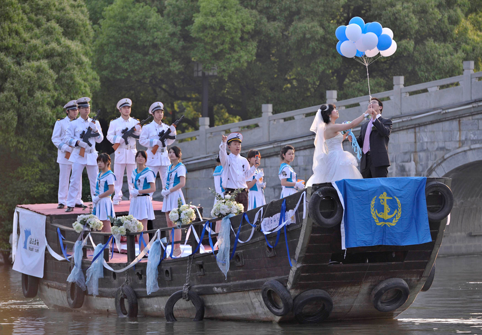 నాంజింగ్, చైనా: సాంప్రదాయక పడవ యాత్రలో కొత్త చైనా జంట