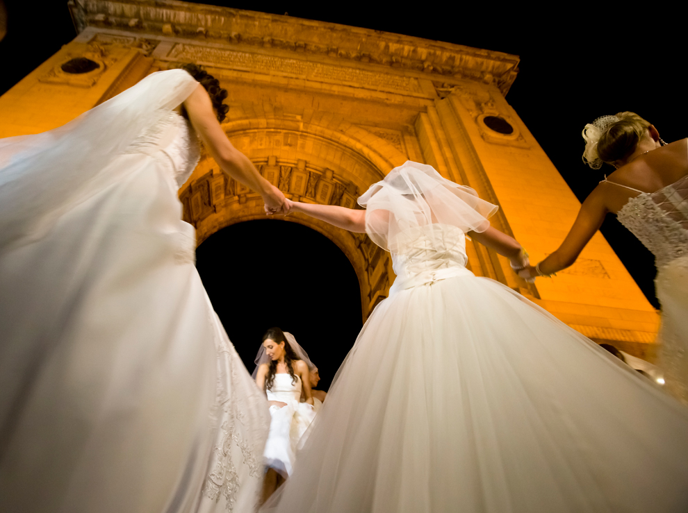 67 Romanian brides dance next to the Triumph Arch in Bucharest, Romania