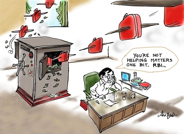 రెండు రోజుల క్రితం భారత ఆర్ధిక మంత్రి పి.చిదంబరం ‘రిజర్వ్ బ్యాంక్ ఆఫ్ ఇండియా’ గవర్నర్ దువ్వూరు సుబ్బారావు పైన బహిరంగంగానే అక్కసు వెళ్ళగక్కాడు. భారత ఆర్ధిక వ్యవస్ధ తిరిగి అభివృద్ధి పట్టాలు ఎక్కించడానికి తాము (ప్రభుత్వం) ఒక రోడ్ మ్యాప్ గీసి మరీ శ్రమిస్తుంటే ఆర్.బి.ఐ తమకు సహకరించడం లేదని ఆయన ఆర్.బి.ఐ పైన యాష్టపోయాడు. ఆర్.బి.ఐ సహకారం లేకపోతే మాత్రం ఏమిటట? నేనొక్కడినే ఒంటరిగా శ్రమించడానికి వెనుకంజ వేసేది లేదు, అని కూడా సాక్ష్యాత్తూ విలేఖరుల సమావేశంలోనే ఆర్ధిక మంత్రి చిదంబరం ఒక అసంతృప్త ప్రకటన చేశాడు. ద్రవ్య విధానం సమీక్ష సందర్భంగా స్వల్పకాలిక వడ్డీ రేటు (రేపో రేటు) ను పావు శాతం మేరకు ఆర్.బి.ఐ తగ్గిస్తుందని చిదంబరం ఆశించగా అది జరగకపోవడమే ఆర్ధిక మంత్రి అసంతృప్తికి కారణం.