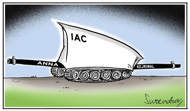 అవినీతి వ్యతిరేక ఉద్యమానికి అన్నా, కేజ్రీవాల్ లు డబుల్ బ్యారెల్ గన్ మాదిరిగా దిశానిర్దేశం చేసిన పరిస్ధితి ఇపుడు తారుమారైంది. ఇండియా ఎగైనెస్ట్ కరప్షన్ (ఐ.ఎ.సి) అనే అవినీతి వ్యతిరేక యుద్ధ ట్యాంకుకి చేరోవైపు వ్యతిరేకదిశలో వారిపుడు నిలబడి ఉన్నారు. ఇద్దరిలో ఏ ఒక్కరు బాణం సంధించి వదిలినా మరొకరి గుండెల్లోనే నేరుగా దిగడం ఖాయం. వారినలా నిలబెట్టడంలో రాజకీయ పార్టీలు సఫలం అయ్యాయి. ఉద్యమకారుల్లో పలువురు ఉద్యమానికి ద్రోహం చేస్తూ రాజకీయ పార్టీలతో సంబంధ బాంధవ్యాలు పెట్టుకోవడంతో ఉద్యమాన్ని బలహీనపరచడం రాజకీయ పార్టీలకు ఇంకా తేలికయింది. అనేక ఉద్యమాలను బలహీనపరిచి తనలో కలిపేసుకోవడంలో కాంగ్రెస్ పార్టీకి ఉన్న అనుభవం మరోసారి అక్కరకు రావడంతో అన్నా, కేజ్రీవాల్ ఎడమొహం, పెడమొహంగా తేలారు.