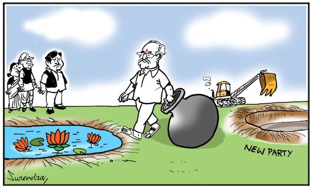 అవినీతి ఆరోపణలతో ముఖ్యమంత్రి పదవిని కోల్పోయిన కర్ణాటక బి.జె.పి నాయకుడు యెడ్యూరప్ప కొత్త ప్రాంతీయ పార్టీకి ఏర్పాట్లు చేసుకుంటున్నాడు. తాను కొత్త పార్టీ పెడుతున్నట్లు యెడ్యూరప్ప ప్రకటించినప్పటికీ ఆయనను బహిష్కరించలేని పరిస్ధితి బి.జె.పిది. బి.జె.పి ప్రభుత్వాన్ని పడగొట్టే ఆలోచనలేదని యెడ్యూరప్ప ప్రకటించినందుకే బి.జె.పి ఆయన పట్ల కృతజ్ఞతతో పడి ఉంటోంది. అలా కాదని ధైర్యం చేసి బెహిష్కరిస్తే ప్రభుత్వం పడిపోవడం ఖాయం. దానితో యెడ్యూరప్ప పార్టీలో ఉంటూనే కొత్త పార్టీ పనులను చక్కబెట్టుకునే అపూర్వ అవకాశం యెడ్యూరప్పకి దక్కింది. బహుశా రాజకీయాల్లో ఇలాంటి అవకాశం ఇంతవరకూ ఎవరూ దక్కించుకుని ఉండరు. యెడ్యూరప్ప పార్టీ మొదలయాక బి.జె.పి నాయకులు, కార్యకర్తలు మెజారిటీ అక్కడికి తరలిపోవడం ఖాయం. దానికి తగిన ఏర్పాట్లు కూడా యెడ్యూరప్ప ఎలా చేసుకుంటుందీ ఈ కార్టూన్ చక్కగా ప్రతిబింబిస్తోంది.