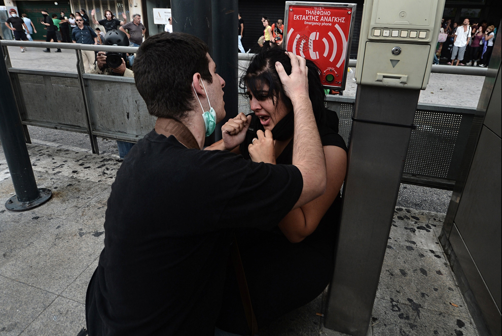 04 Oct 9; Greeks suffer tear gas attack during Germany Chancellor’s visit