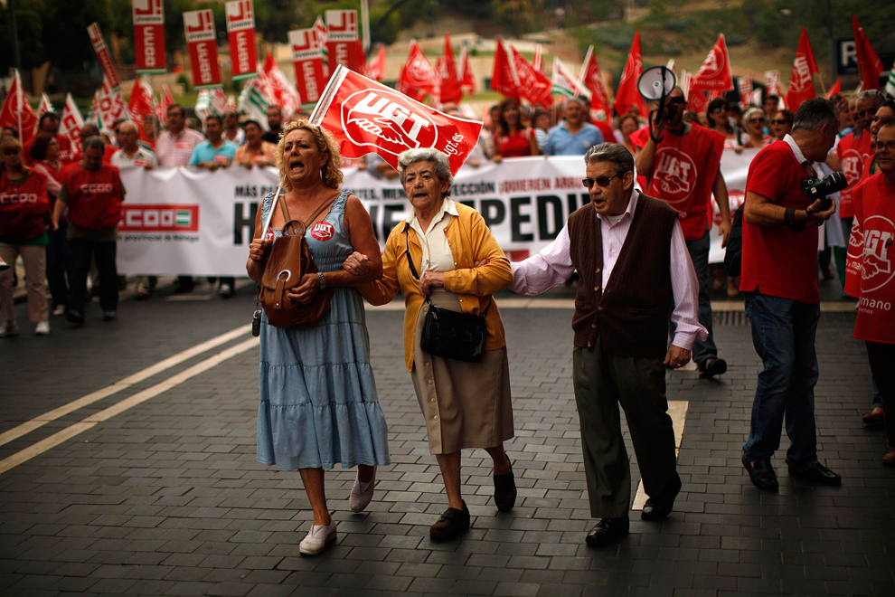 11 Oct 7; Pensioners protest pension cuts in Malaga, Spain