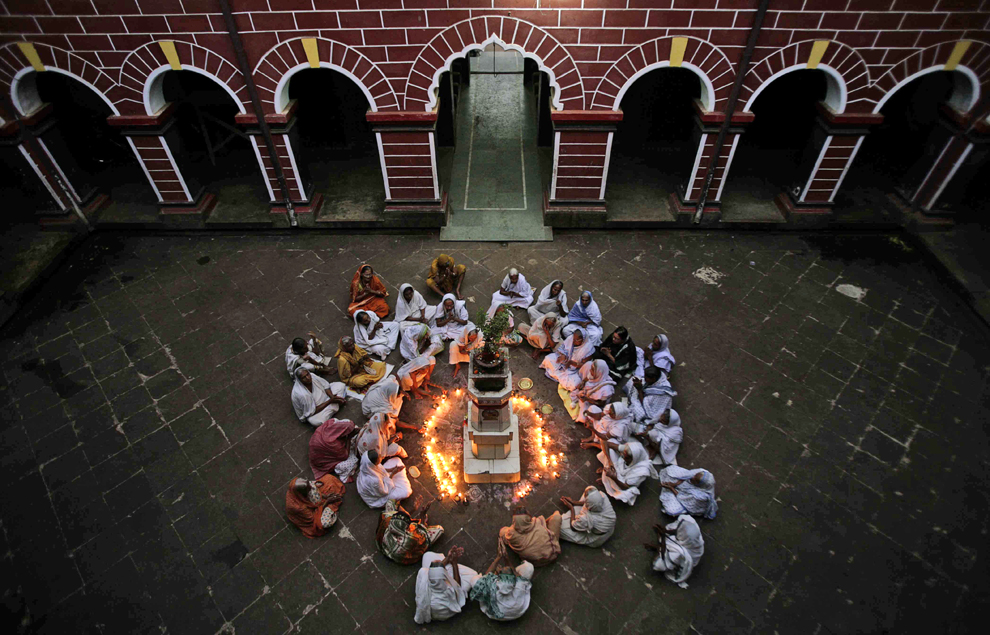 04 Bhubaneswar -Lamps lit around Tulsi plant