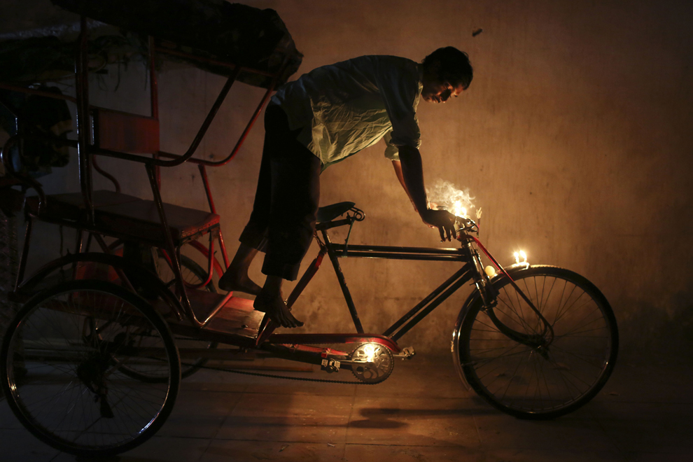 16 New Delhi -Rikshaw puller celebrates Diwali