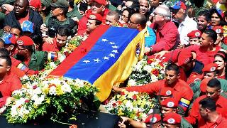 ఛావెజ్ మృతదేహాన్ని ఆసుపత్రి నుండి అధ్యక్ష భవనానికి తరలిస్తున్న దృశ్యం