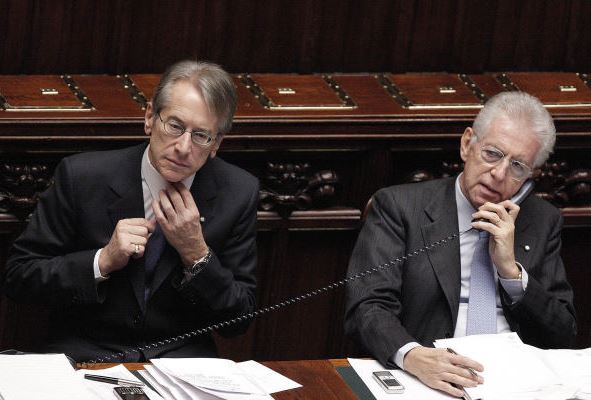 రాజీనామా చేసిన విదేశీ మంత్రి గిలియో టెర్జి (ఎడమ) తో ఇటలీ ప్రధాని మెరియో మోంటి