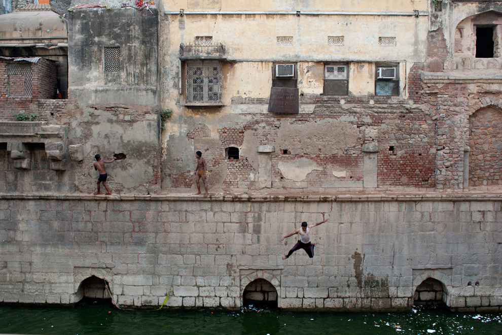 ఢిల్లీలో మెట్ల బావిలో వేసవి తాపం తీర్చుకుంటూ…