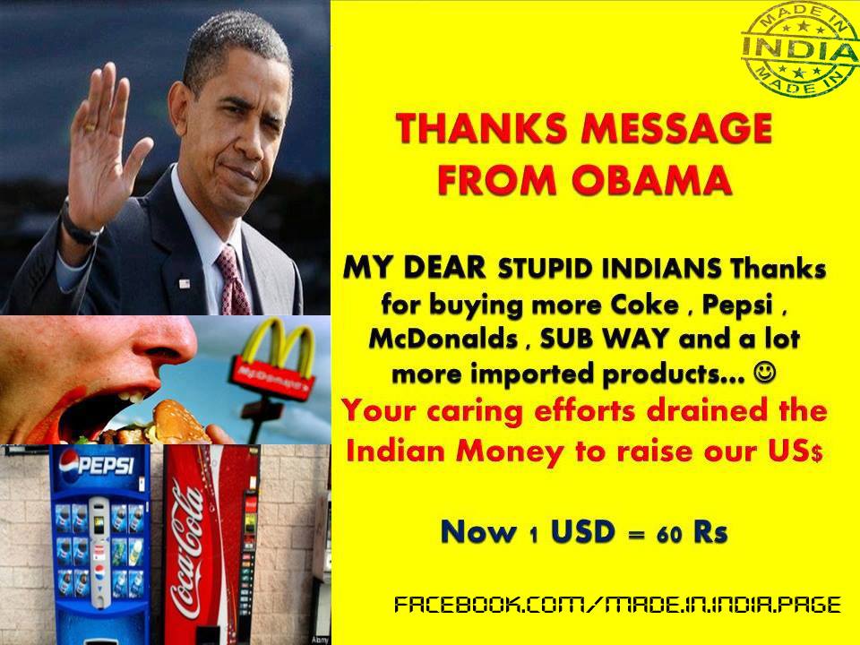 పాలకులు, పాలసీల కంటే ఫారిన్ వస్తువులంటే మనలో ఉన్న వ్యామోహం మొదటి కారణం. ఆమలాపురానికి దారెటో తెలియని అమాయకుడు కూడా అమెరికా వస్తువని చెప్పగానే ఆబగా కొనేస్తాడు. http://www.screentalent.wordpress.com