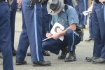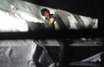 - పడవ నుండి బైటికి వస్తూ… (నుదుటిపై పోలీసు తుపాకి లేజర్ కాంతి)