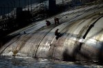 ఈ ఓడ పేరు కోస్టా కంకార్డియా. దాదాపు రెండేళ్ల క్రితం ఈ ఓడ పొరపాటునో, గ్రహపాటునో ఇటలీ లోని ఒక ద్వీపం ఒడ్డుకు దగ్గరగా వచ్చి అడుగును ఢీ కొట్టడంతో పక్కకు ఒరిగిపోయింది. ఆ సందర్భంగా ప్రయాణీకులు, సిబ్బందిలో 32 మంది చనిపోయారు. 600 రోజులకు పైగా ఇలా పక్కకు ఒరిగి ఉండడంతో ఓడ బరువుకు ఒరిగిన వైపు మొత్తం అణిగిపోయి దెబ్బతింది.