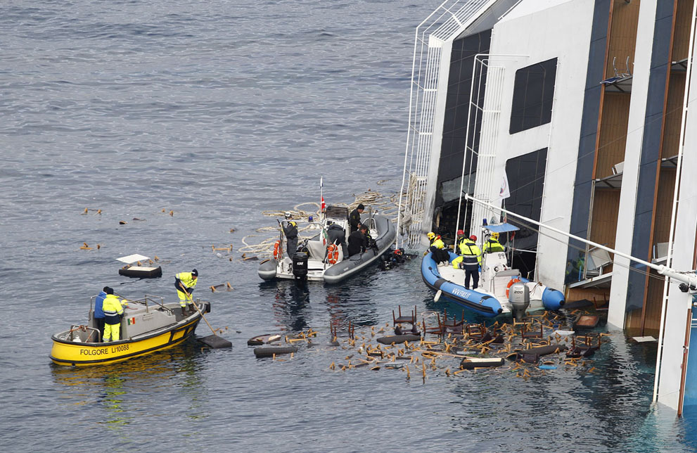 Parbuckling of Costa Concordia 07 -Chairs afloat on 23.01.2012